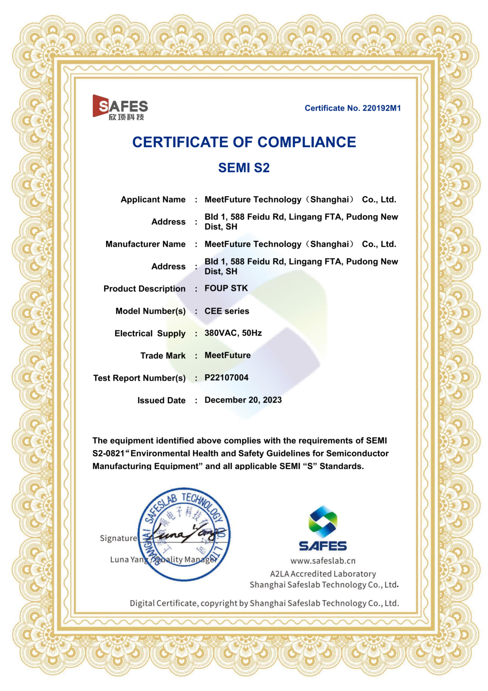 自 2018 年以来,Ebpay科技取得了国际标准化组织(ISO)质量管理体系(ISO 9001)、环境管理体系(ISO 14001)和职业健康安全管理体系(ISO 45001)认证。在AMHS产品技术体系领域,我们遵循半导体设备标准通讯协议,包括SEMI E37、 E82、E30、 E84、E10 等,使其易接入半导体晶圆厂MES系统来实现数据交互。